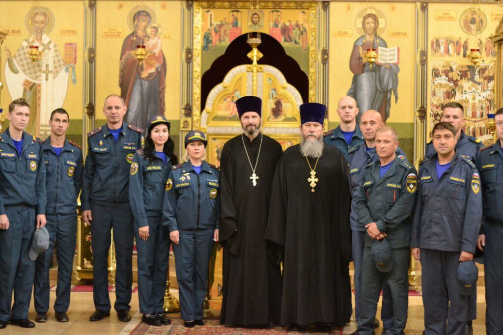 17 сентября 2025 года в г. Краснозаводске в храме Всех святых, в земле Русской просиявших, перед иконой Божией Матери «Неопалимая Купина» был совершен молебен с участием личного состава МЧС.